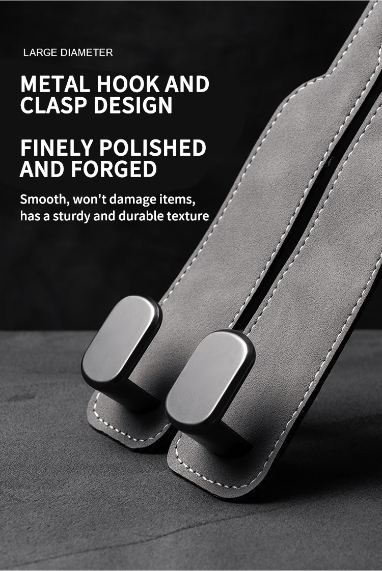 [Zinc Alloy Load-Bearing, Built to Last] - The hook body is reinforced with durable zinc alloy hook, providing strong load-bearing capacity to securely hold heavy items like laptop bags and shopping bags without breaking or deforming. The leather strap is tough and wear-resistant, maintaining its quality even after repeated installation and removal.
