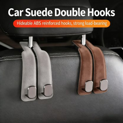 [Hidden Double Hook Design, Keep Your Car Tidy & Clutter-Free] -Zinc alloy hook reinforced double hooks, they lie flush against the seat back when not in use, saving space and avoiding the bulky look of traditional hooks. The dual hooks can hold bags, clothing, shopping bags, and more simultaneously, organizing clutter and keeping your car interior neat.